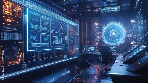 © Shyamal, Fototapeta premium A programmer focuses hard on code, green shapes glowing behind.