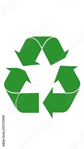 © Panut, Fototapeta premium A prominent green triangular symbol indicating renewability and reuse