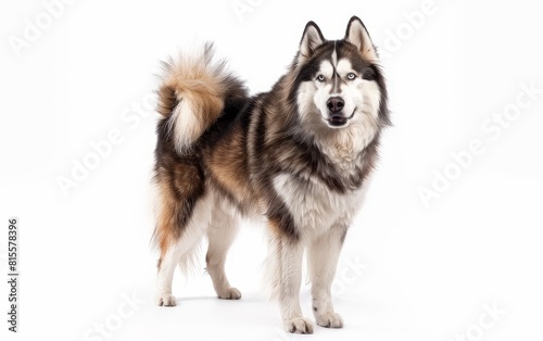 Obraz premium A proud Alaskan Malamute stands with a bold stance, its dense coat and alert...