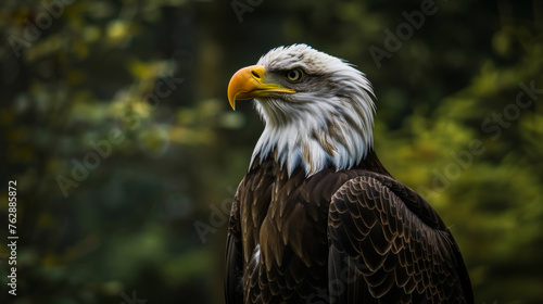 © Phichitpon, Fototapeta premium A proud American eagle sits on a branch. AI generated