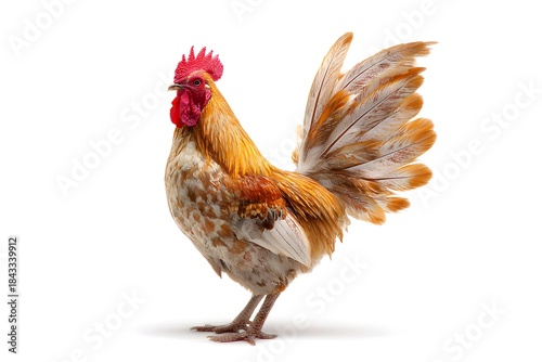 Fototapeta premium A proud rooster stands tall on white background