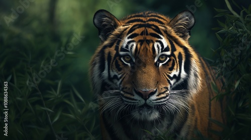 © mirifadapt, Obraz premium A proud Siberian tiger. Tiger in the bush