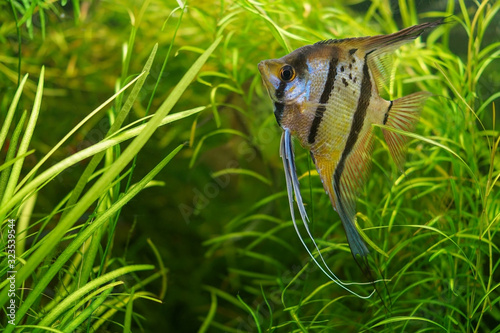 © 13threephotography, Obraz premium A Pterophyllum scalare or freshwater angelfish in an aquarium