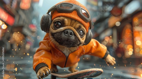 Naklejka premium a pug on a skate