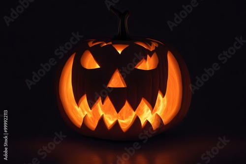 Fototapeta premium A pumpkin surrounded by a ring of ghostly flames glowing in the dark, Ai...