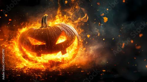 Naklejka premium A pumpkin with an otherworldly glow as it burns with a mesmerizing blaze of...
