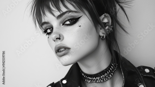 © jobim, Fototapeta premium a punk girl with tremble art. back and white. white background. copy text space. 2/3 empty space for text