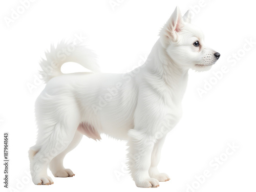 Obraz premium A purebred white dog stands on a clean and minimalist white surface, ready...