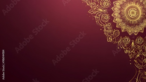Fototapeta premium A purple card with a golden mandala ornament on the right side, featuring a flat design, simple shapes, and a minimalistic style. The color scheme is elegant and sophisticated