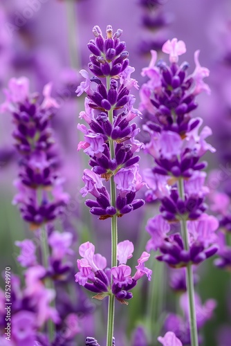 © inspiretta, Obraz premium A purple flower with a purple stem is in a field
