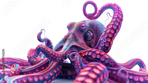 © MONWARA, Obraz premium A purple octopus with blue and green spots isolated on a transparent background