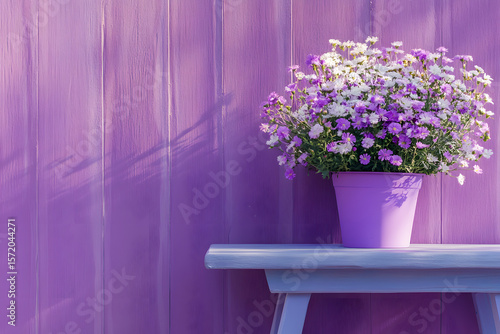 © Le, Fototapeta premium a purple potted plant sitting on a table