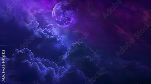 © JuroStock, Fototapeta premium A purple sky with a large moon and stars