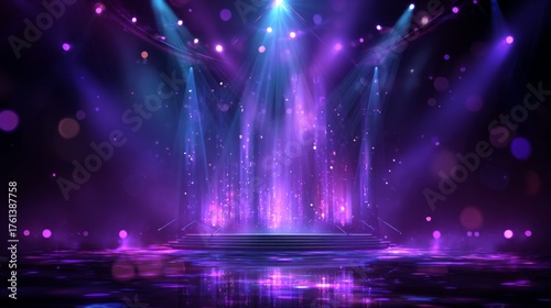 © tope007, Fototapeta premium A purple stage with lights shining on it