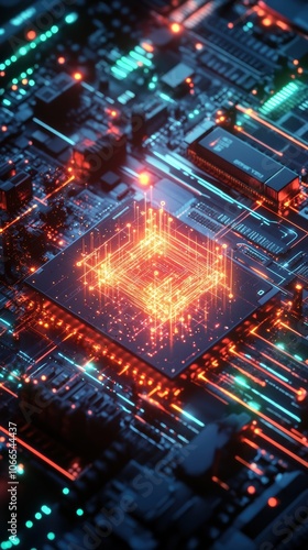 © Syahrul Zidane A, Obraz premium A quantum computer in action, with glowing qubits entangled in complex patterns