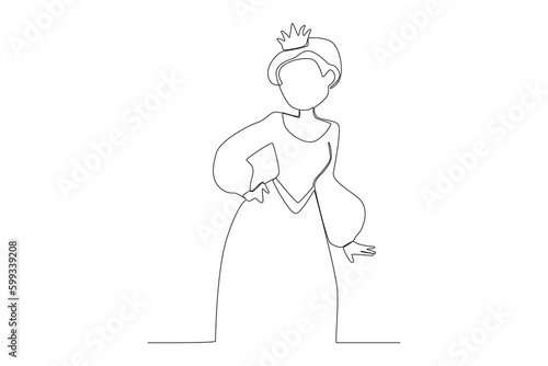Fototapeta premium A queen posing for her coronation day. Queen one-line drawing