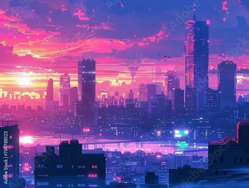 Obraz premium A quiet cityscape at dusk, reflecting the calm and beauty of urban twilight....