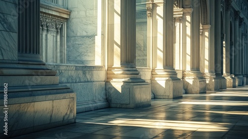 © boy 3344, Obraz premium A quiet early morning view of the New York Public Library, with soft light casting shadows on its marble facade.