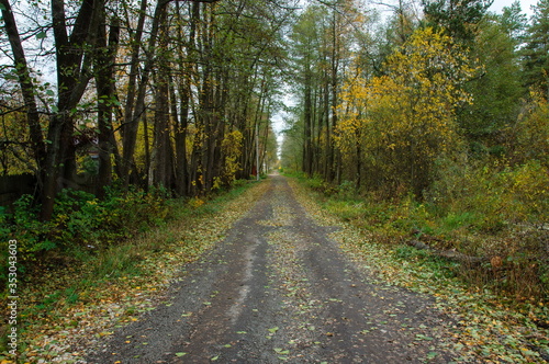 Fototapeta premium A quiet empty street on an autumn morning. Moscow region. Russia.