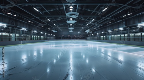Fototapeta premium A quiet ice rink under the glow of spotlights, showcasing the sleek,...