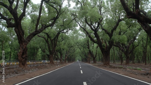 Fototapeta premium A Quiet Journey Through a Lush, Green Tunnel of Majestic Canopy Trees.