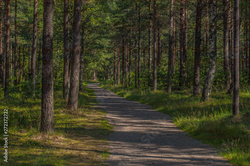Fototapeta premium A quiet path throug a forest park on a sunny day.