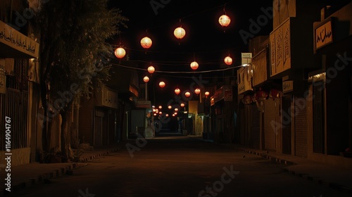 © Ari, Fototapeta premium A quiet Ramadan night with lanterns glowing in an empty street, peaceful and reflective mood