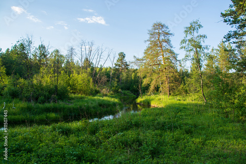 Obraz premium a quiet river in a beautiful summer forest.