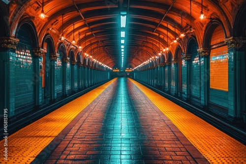 © Muhammad, Fototapeta premium A quiet subway station, nearly deserted, just before the stroke of midnight.
