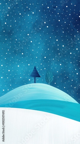 © Anna, Naklejka premium A quiet winter landscape with falling snow, a simple horizon line, and empty space in the sky for text