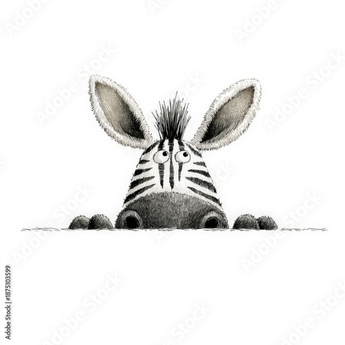 Naklejka premium a quirky zebra peeking over a line
