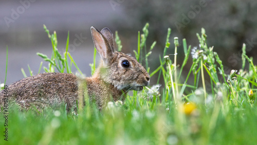 © Piotr, Fototapeta premium A rabbit is eating grass in a field