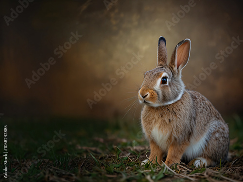 Fototapeta premium A rabbit on a textured grey surface with ample blank space.
