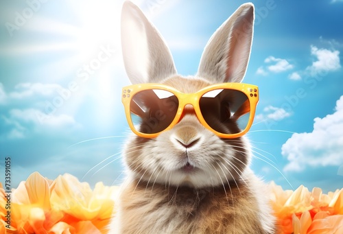 Fototapeta premium A rabbit wearing sunglasses and a colorful background