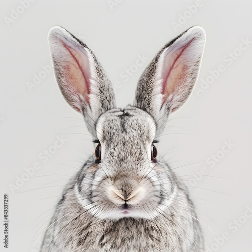© Mah, Fototapeta premium A rabbit with its ears flopped over its face looking goofy isolated on a white background