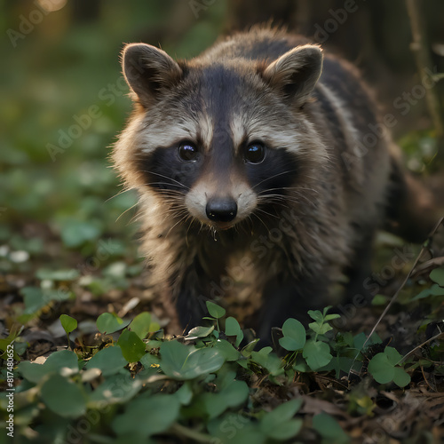 © Masum, Naklejka premium a raccoon that is walking through the grass