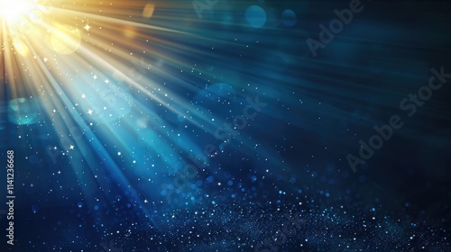 © AthayaStock, Obraz premium A radiant burst of light with shimmering particles in a deep blue background.