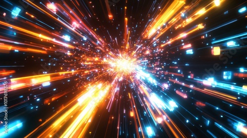 Fototapeta premium A radiant burst of light with streaks of blue and orange