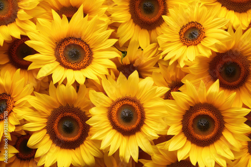 © Artemiy, Obraz premium A radiant display of sunflowers creates a bright, vibrant background.