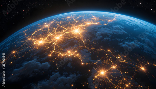 © Nur, Fototapeta premium A radiant Earth orbits the sun in the vast expanse of space