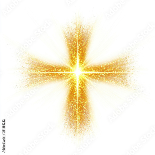 Fototapeta premium A radiant golden cross explodes with light, creating a sparkling burst of...