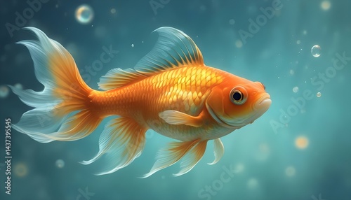 Fototapeta premium A radiant goldfish glides through the cool, clear water, a sight of graceful...
