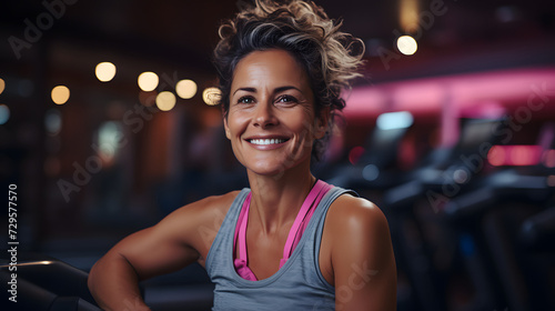 Fototapeta premium A radiant lady with a genuine smile, adorned in a fashionable sleeveless...