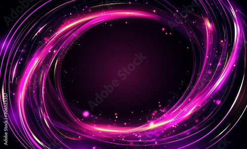 Naklejka premium A radiant magenta frame with flowing light trails on a dark background, perfect for vibrant and energetic designs.