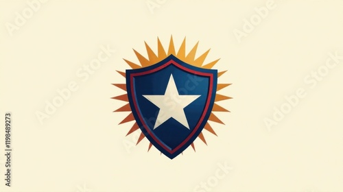Obraz premium A radiant star within a protective shield, encircled by a sunburst emblem,...