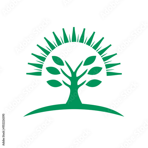 Obraz premium A radiant sun rising behind a tree with its roots visible below Isolated on...