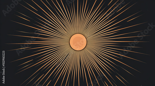 © Kseniya, Obraz premium A radiant sunburst icon with symmetrical rays, symbolizing weather or forecast apps, art deco