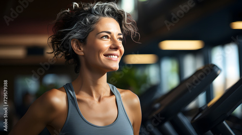 © Janina, Fototapeta premium A radiant woman exudes confidence and warmth as she gazes at the camera, her bare shoulders adorned with a stylish sleeveless shirt