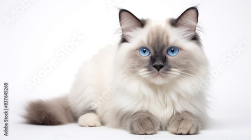 © Iuliia, Fototapeta premium a Ragdoll cat on a white background