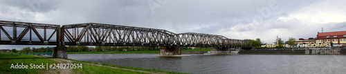 © Konrad_elx, Fototapeta premium A railway viaduct in Wroclaw leading across the Odra River